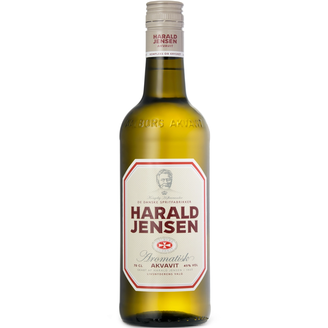 Harald Jensen Akvavit – en aromatisk klassiker fra Aalborg, skabt af kunstneren og brændevinsbrænderen Harald Jensen i 1863. Dobbelt-destilleret og krydret med kommen, anis, ingefær, galangarod, allehånde og romersk kamille. En karakterfast dansk akvavit med dybe rødder i Aalborgs brændevinshistorie og en smag, der stadig står stærkt den dag i dag. En smag, der stadig står som et modstykke til Aalborg Taffel.